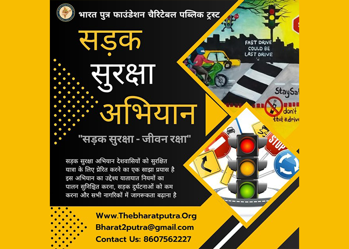 Sadak Suraksha Abhiyan is an important safety campaign initiated by Bharat Putra Foundation Charitable Public Trust aimed at enhancing road safety awareness and reducing accidents on public roads. This initiative focuses on educating citizens about traffic rules, safe driving habits, and the importance of road infrastructure maintenance to ensure safer travel for all road users.